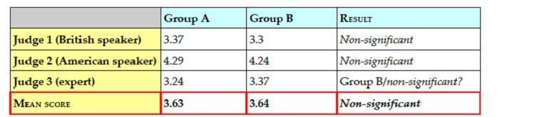 American English speaker – are just as inconclusive. While Group B has a mean score of 4.24