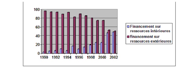 Il est à noter que de 1990 à 1997, excepté l’année 1995, les programmes d’investissements publics étaient financés à moins de 15٪ par les recettes budgétaires. Ainsi, ils sont pour la plupart financés par les ressources extérieures dont l’emprunt.