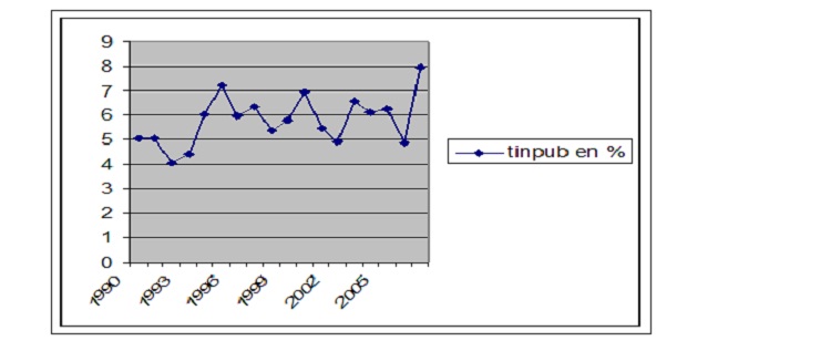 Graphique №4 : Evolution du taux d’investissement public de 1990 à 2007