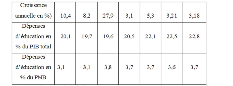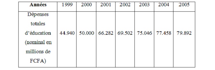 Tableau n°6 : Evolution des dépenses d’éducation de 1999 à 2005