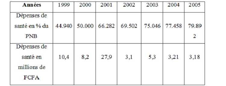En ce qui concerne la période 1999-2005, les dépenses d’éducation ont progressé suivant un rythme annuel en moyenne de 8,76%. Quant à celles dans le secteur de la santé, elles sont passées de 30,821 milliards de FCFA en 1999 à 40,678 milliards en 2005.