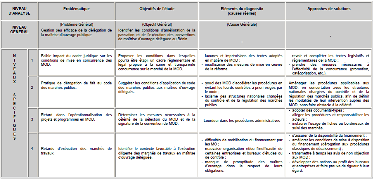 Conformément au diagnostic établi, les difficultés de mobilisation du financement, le manque de promptitude des maîtres d’ouvrage dans le respect de leurs obligations, la mauvaise organisation et/ou l’inefficacité des bureaux d’études et entreprises expliquent les retards d’exécution des marchés de travaux, en MOD. Aussi faudra-t-il agir à plusieurs niveaux.