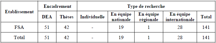 Tableau II : Effectif des DEA, Docteurs, Chercheurs solitaires ou en équipe de la FSA en 2009