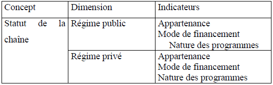 Ainsi, construisons-nous les concepts suivants : programmation, statut de la chaîne, public visé et moyens de production disponibles.