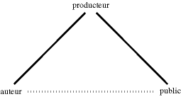C’est le schéma du ” sablier “, dans lequel s’échangent des programmes contre du temps, le temps des téléspectateurs transformés en audience pour les annonceurs, selon le schéma suivant :