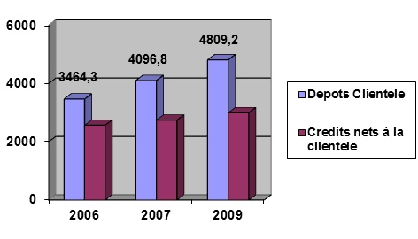 – Les dépôts de la clientèle se sont élevés à 4809,2MD à fin 2008, ce qui correspond à une augmentation de 17,4% par rapport à la fin de l’exercice 2007.