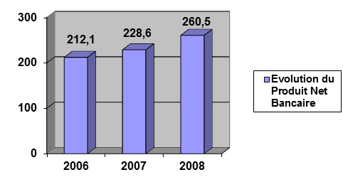 Le produit net bancaire s’est situé à 260,5MD à fin 2008, enregistrant ainsi une évolution de 14,0%.