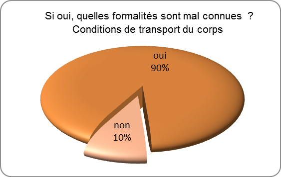 Sont mal connus : le délai de conservation du corps à domicile (12), le choix libre d’une entreprise de pompes funèbres (10), le lieu ou sera déposé le corps en attente de l’inhumation, ou la crémation (6).