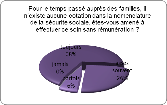 La majorité des infirmiers déclare ne recevoir aucune rémunération pour le temps passé auprès des proches, les conseils, et l’aide apportée dans cet instant.