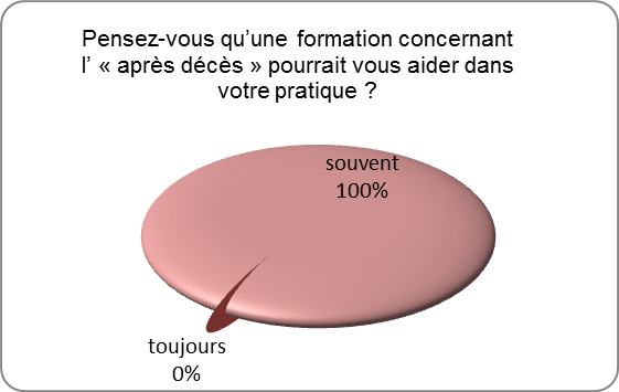 Ainsi, la grande majorité des infirmiers (71%) pense qu’une formation concernant l’après décès pourrait être bénéfique à leur pratique.