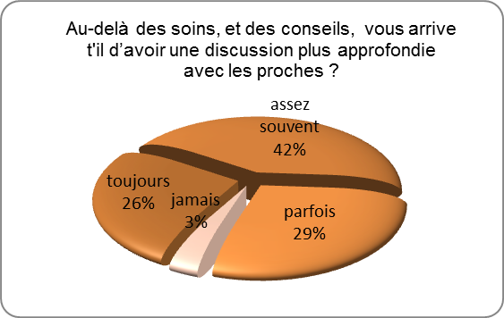 Ils évoquent une relation humaine faite d’amitié (2 récurrences), le lien construit (12 récurrences), l’intimité avec la famille (8 récurrences), la compréhension (5 récurrences), le partage réciproque (7 récurrences), la notion d’accompagnement (16) récurrences.