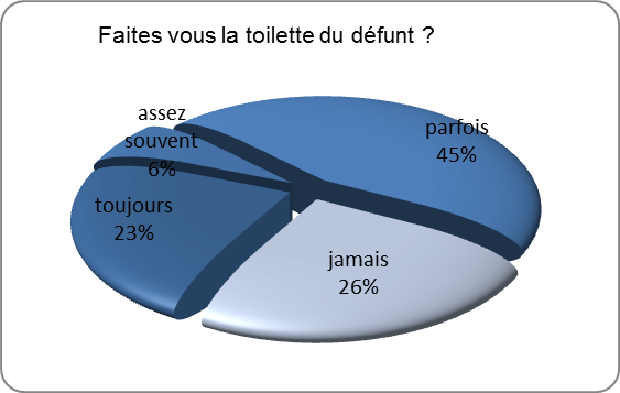 La réalisation de la toilette du défunt est donc peu uniforme, selon le profil de chaque soignant.