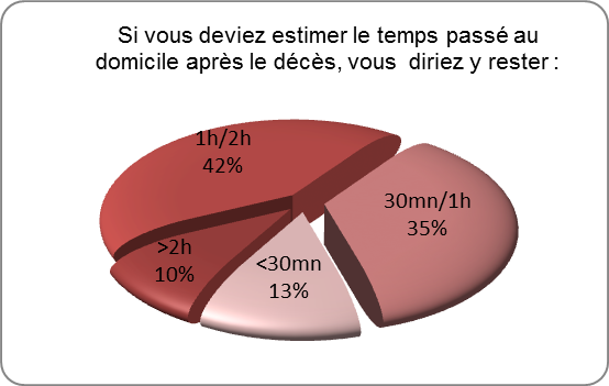 Discours : Rassurer sur la souffrance (11 récurrences), l’acceptation de la mort par le défunt(5 récurrences), discussion sur le fait de garder le corps au domicile plus ou moins longtemps (4 récurrences ).