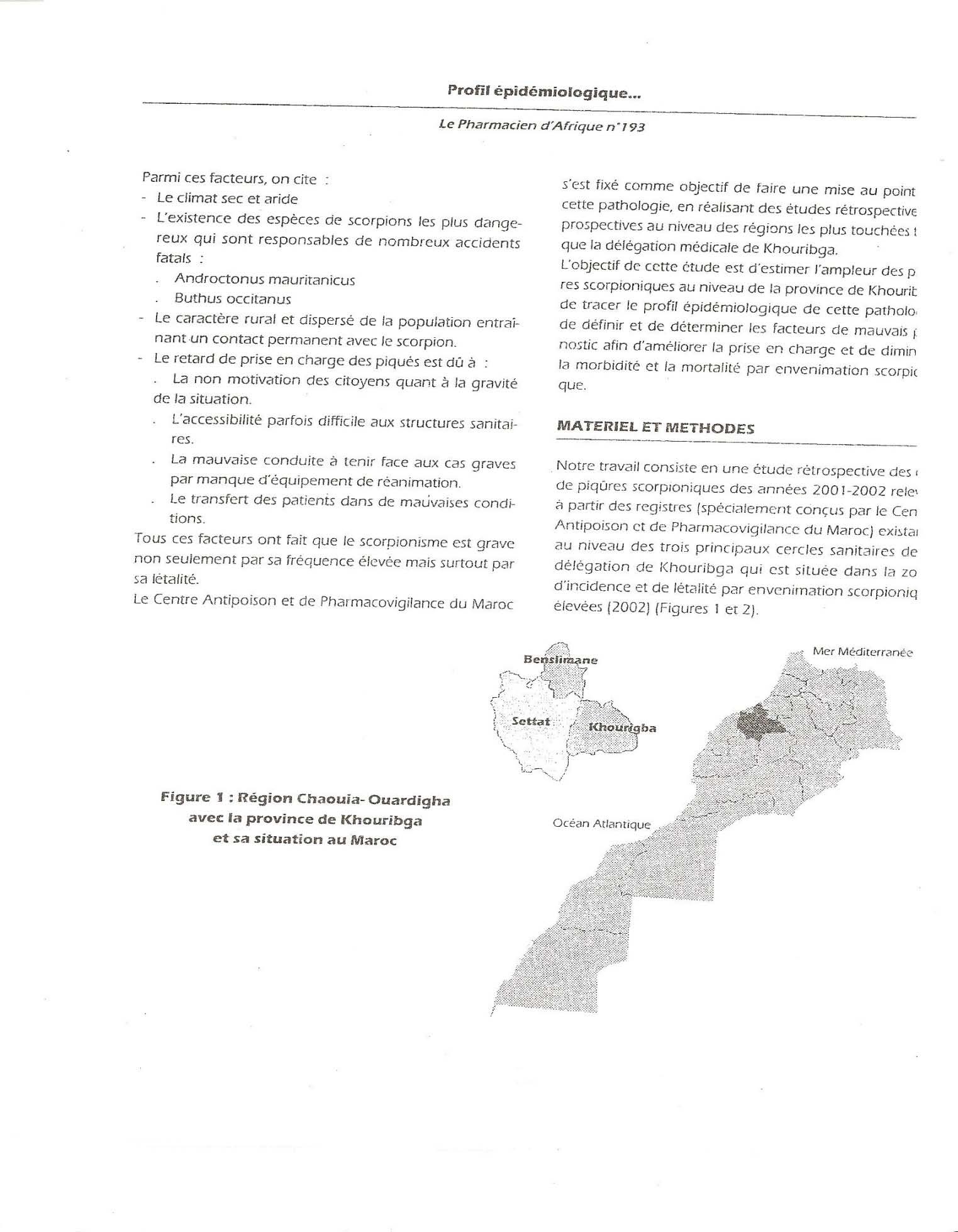 Retour au menu : Scorpionisme, Epidémiologie et Facteurs de Risque au Maroc : cas de la province de Khouribga