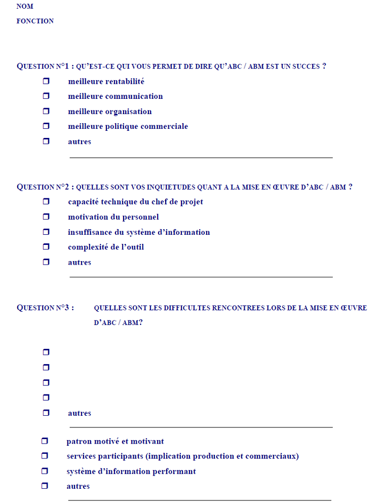 Retour au menu : LA METHODE ABC/ABM EST-ELLE TRANSPOSABLE AUX PME/PMI ?