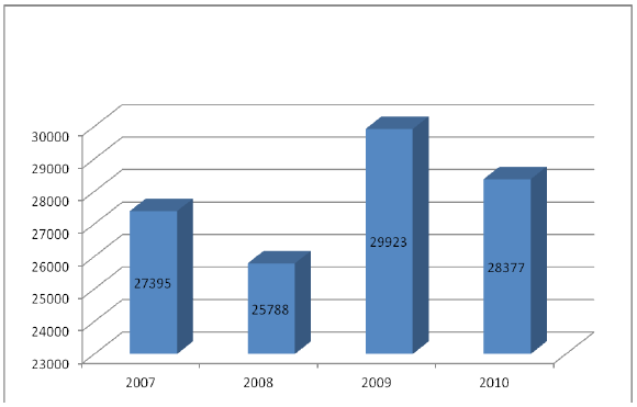 En 2010: 28377 cas ont été déclarés au CAPM, avec une incidence annuelle de 0,88 ‰