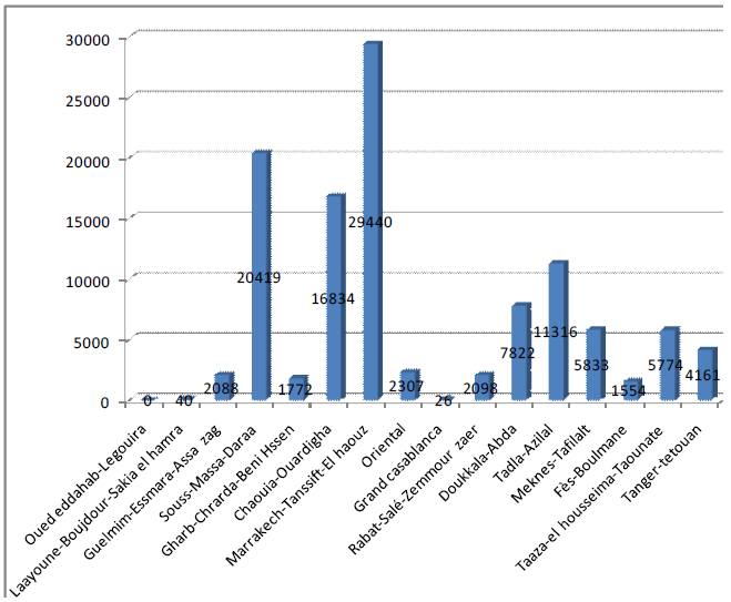 Figure 30 : Répartition de la mortalité dans les 16 régions du Maroc