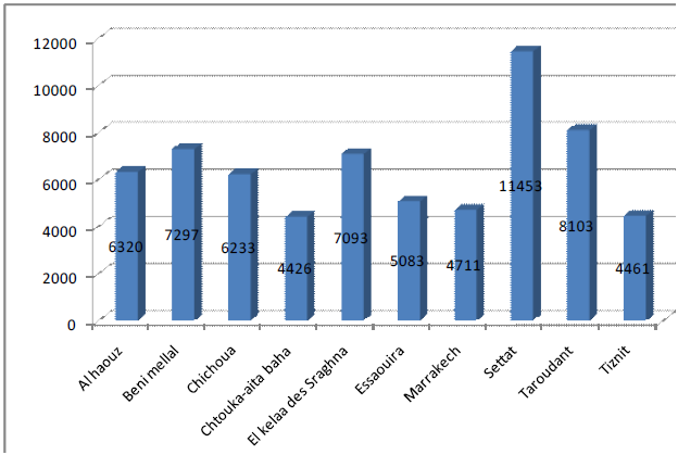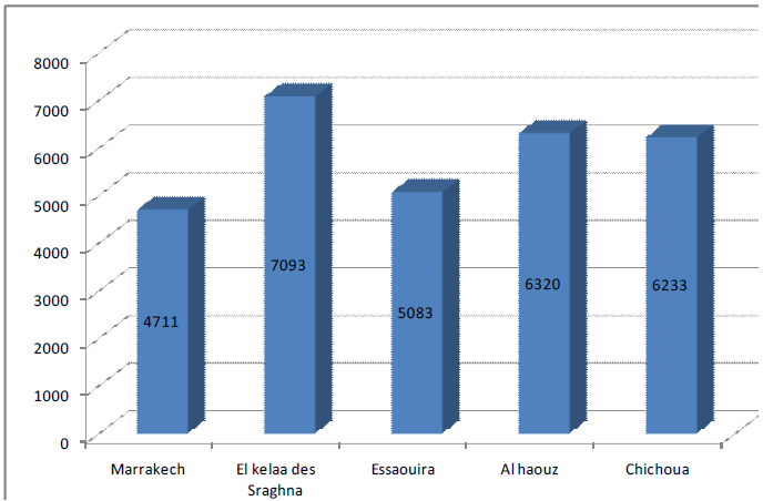 Figure 15 : Les provinces les plus touchées de la région Marrakech-Tanssif-Alhaouz