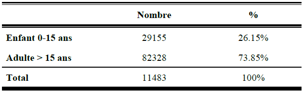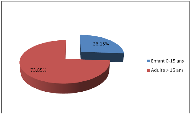 Toutes les tranches d’âge sont touchées par cette affection avec une prédominance chez les adultes plus de 15 ans (73.85%).