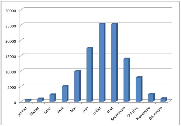 Nous avions noté un pic de fréquence de piqure entre les mois de juillet et août, soit : 45,40% de l’ensemble des piqures.