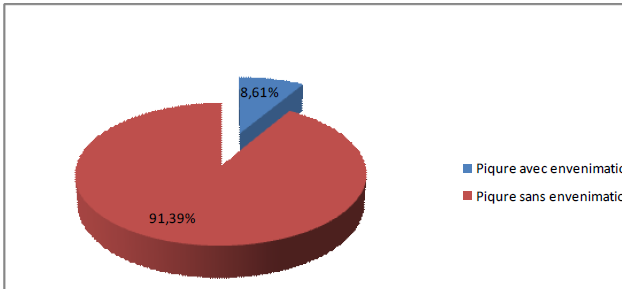 La majorité des patients de notre série d’étude sont piqués sans être envenimés, avec 101882 cas, soit un taux de (91,39%).