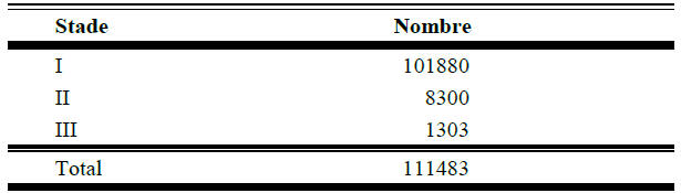 A- RÉPARTITION SELON LA GRAVITÉ (STADE) :