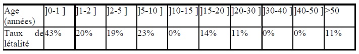 Tableau III : Taux de létalité en fonction de l’âge