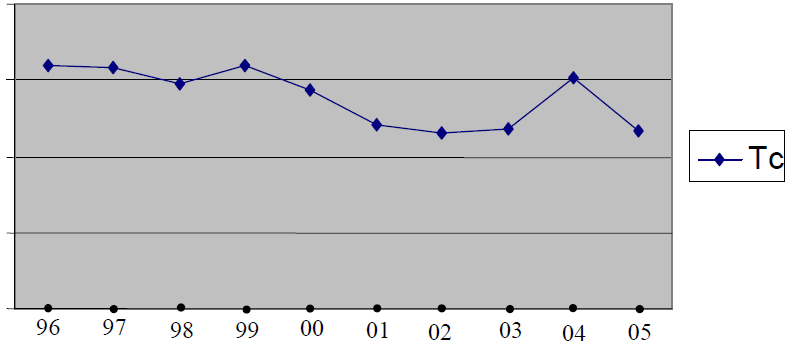 de 2000 à 2004, il est observé une baisse de cet indicateur ; on est passé de