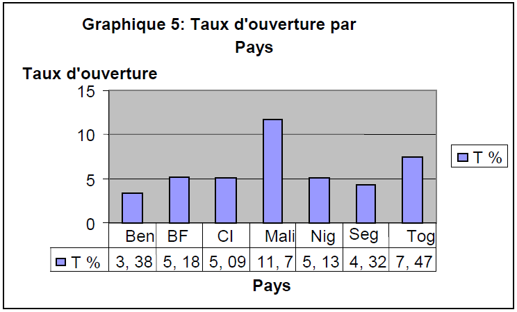 Graphique N°4 : Taux d’ouverture par pays