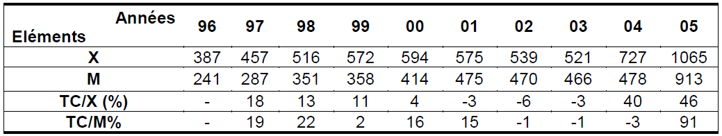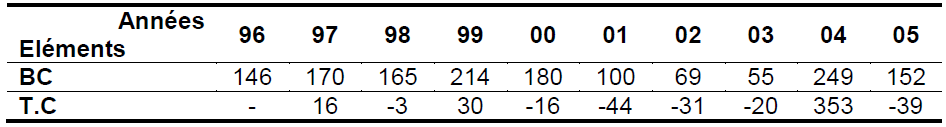 En effet, l’analyse du tableau 2 indique que tout au long de la période, ce taux