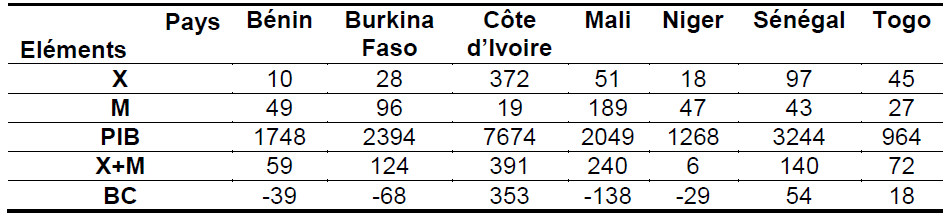 En effet, seuls la Côte d’Ivoire, le Sénégal et le Togo réalisent une balance