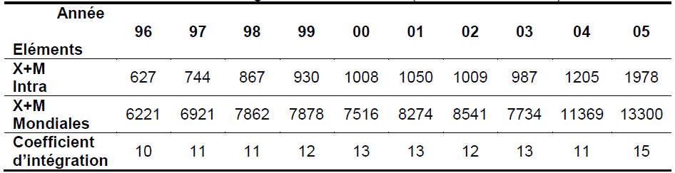 échanges commerciaux en son sein et par rapport au reste du monde. Le tableau 5