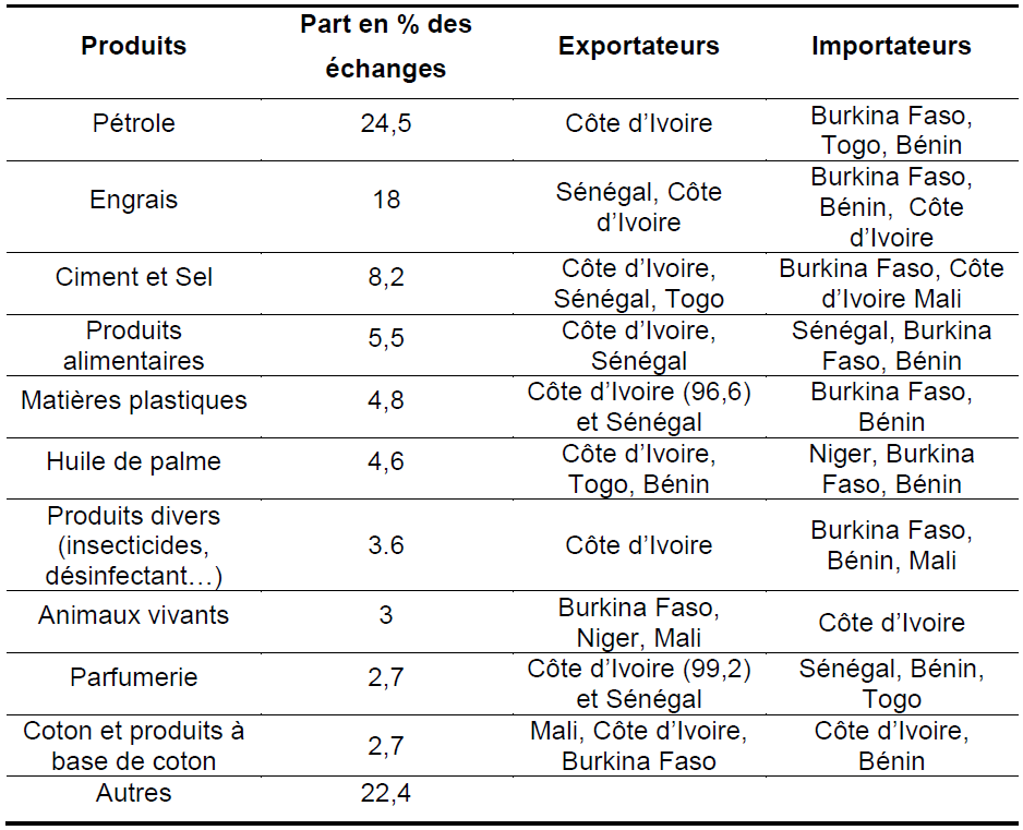 Le commerce intra UEMOA, concerne pour la plupart les produits directement