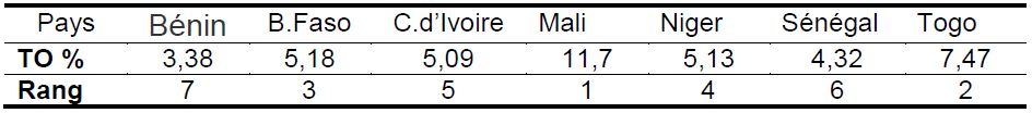L’analyse de ce tableau révèle que : seuls le Mali et le Togo sont les pays dont