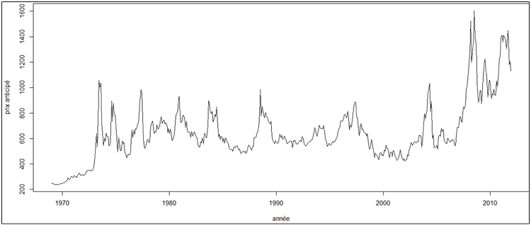 La stationnarité du prix anticipé au seuil de 5% peut laisser supposer les évènements du choc pétrolier, de la crise financière comme des effets « arch » (confère supra).