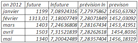 Le prix anticipé du soja sur le marché à terme peut être approché à défaut par le processus autorégressif et moyenne mobile arma(1,3) qui satisfait au mieux les critères classiques de qualités prévisionnelles (confère annexe).