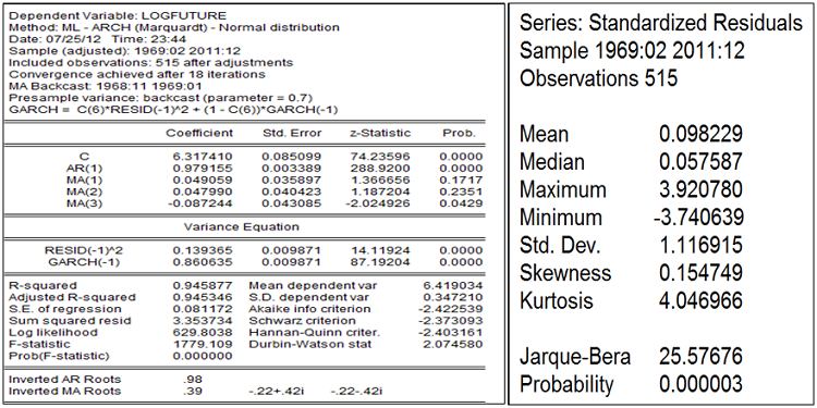 〖logfuture〗_t=〖6,505+0,966578logfuture〗_(t-1)+0,021161ε_(t-1)+0,131856ε_(t-2 )-0,100269ε_(t-3 )