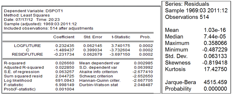 〖dspot〗_t=c+〖logfuture〗_t+ε^future+ε^dspot
