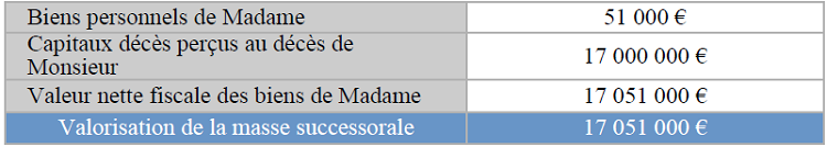 Par conséquent, la masse successorale de Madame s’élèverait à 19 940 050 €.