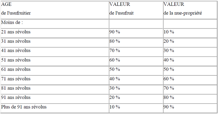 Le barème déterminant la valeur de la nue-propriété et de l’usufruit