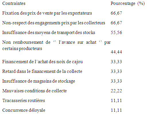 1. Contraintes liées à la commercialisation de l’anacarde :