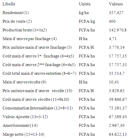 Paragraphe 1 : Mesure de la rentabilité financière, de la rentabilité économique et des transferts de la fonction de production de la filière anacarde