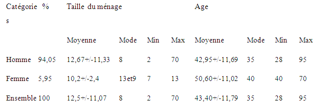 Tableau n°7 : Répartition des chefs de ménages selon le sexe, l’âge et la taille du ménage.