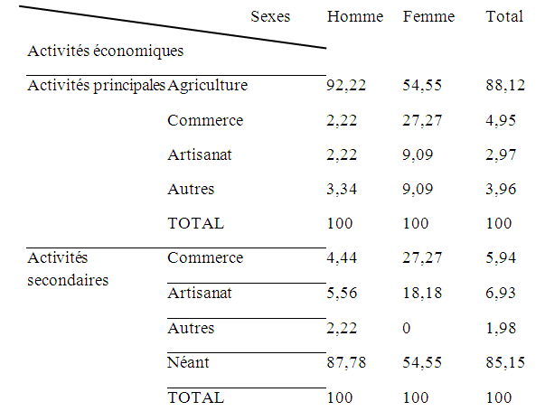 Tableau No6 : Répartition des enquêtés selon leur sexe et leurs activités économiques.