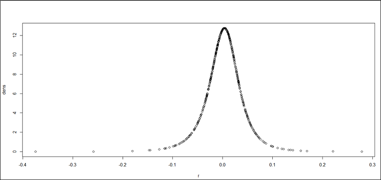 Le bootstrapping confirme la prise en compte unilatérale des pertes, avec une distribution extrêmement étalée à gauche, voire les pires pertes qui peuvent être enregistrées, et d’autre part le plus petit gain et les rendements nuls constituant le seul et unique mode. C’est la plus pessimiste vision du risque que l’on pourrait attendre, la value at risk non-paramétrique étant de 0,1016%.