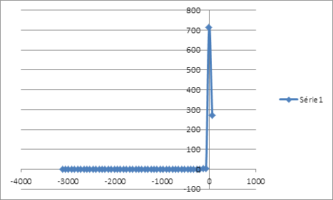 La distribution des rendements de la position couverte issue du ré-échantillonnage possède un seul mode au niveau des rendements nuls et étalée plus à gauche qu’à droite. La distribution des rentabilités est loin de suivre la loi de gauss. On peut calculer la VaR de la position couverte en interpolant la fonction de probabilité cumulative. Pour un α de 1%, le rendement que lui associe la fréquence cumulative serait de -35,8940683%. Ce résultat est obtenu sur une période de 515 jours, soit le nombre d’observations de la simulation. Pour un α de 1%, le rendement associé à la VaR serait d’environ -0,0697% par jour. Calcul de la value at risk par extrapolation linéaire :