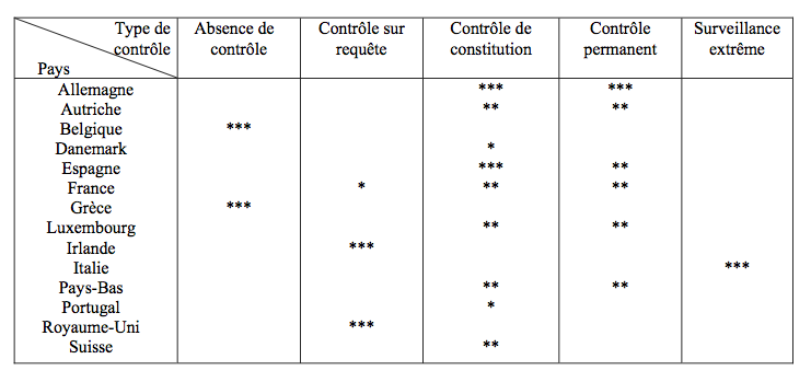 On peut se faire une idée de ces différents degrés de contrôle dans le tableau suivant :