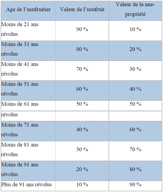 Part de l’usufruit évaluée à 60 % en application de l’article 669 du CGI