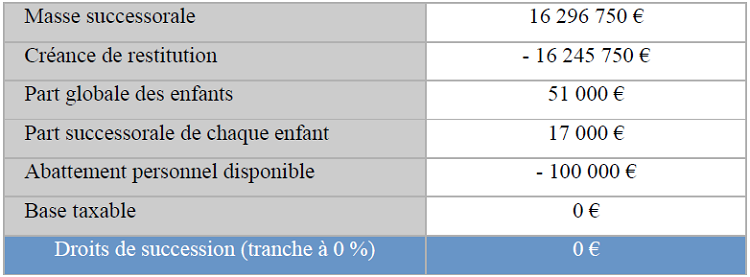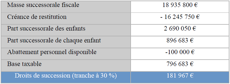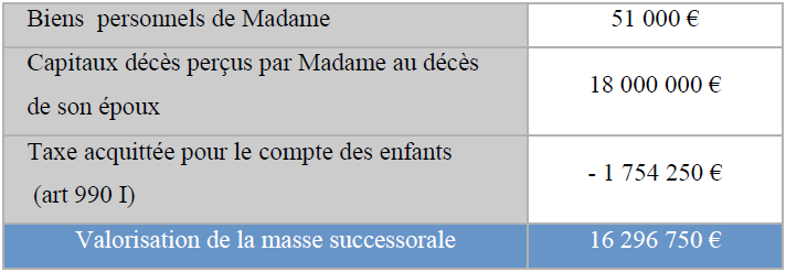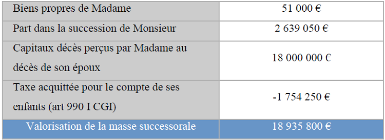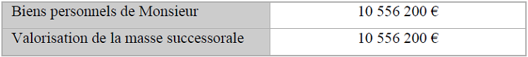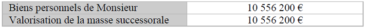 Par conséquent, la masse successorale de Madame s’élèverait à 18 935 800 €.