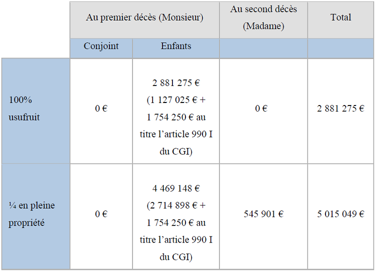 A) Option pour la totalité de la succession en usufruit
